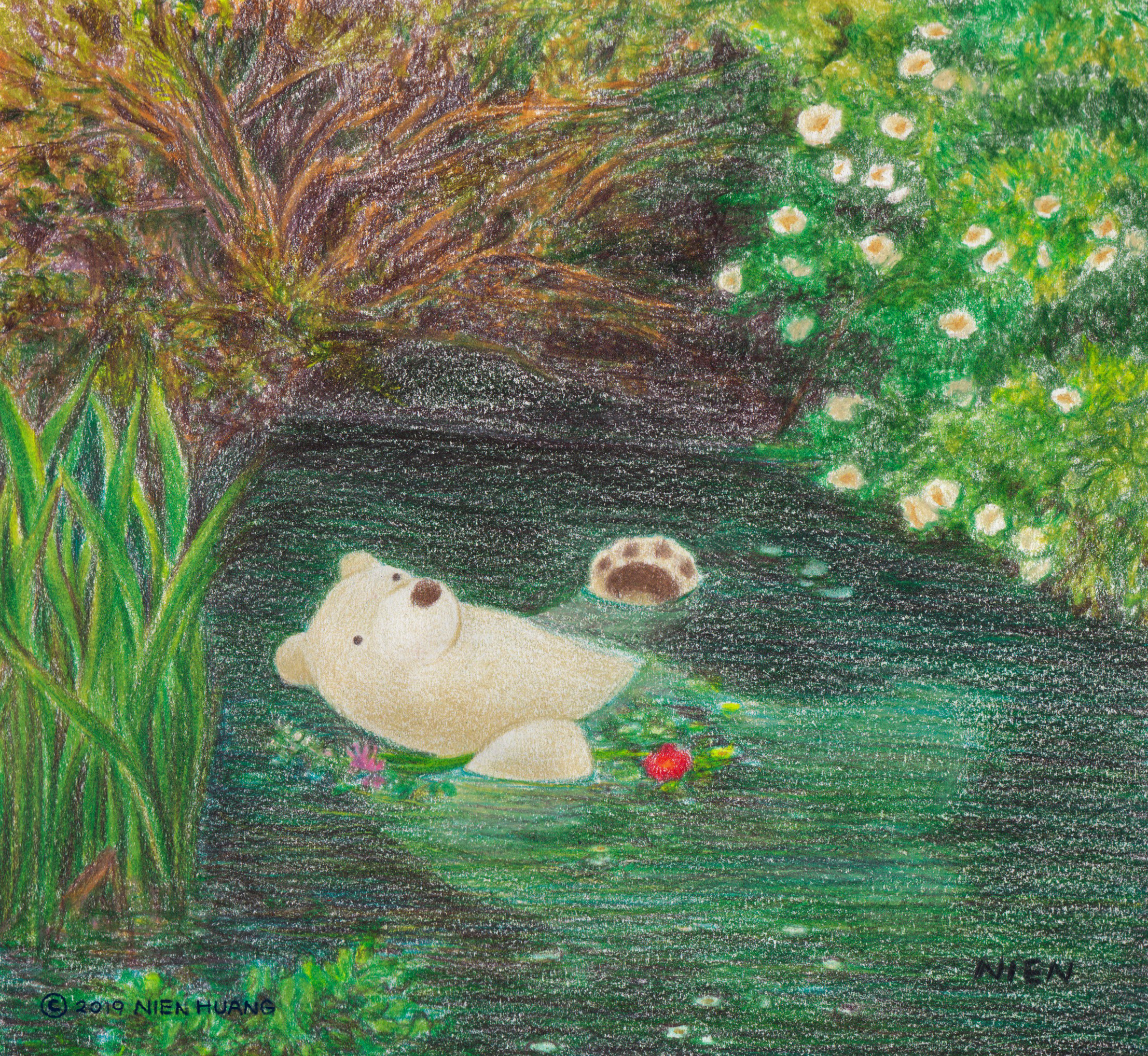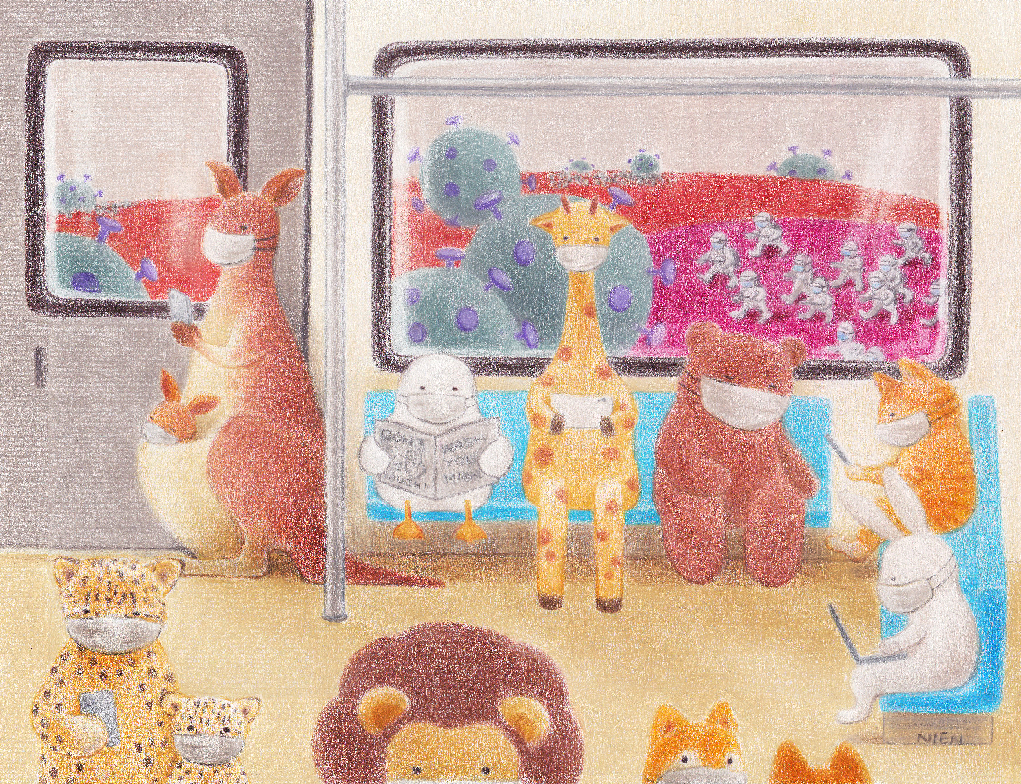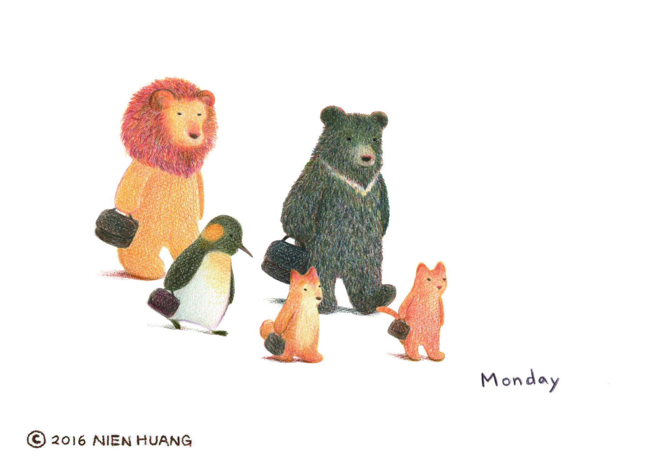 擅長用色鉛筆以擬人的手法來描繪動物與生活點滴