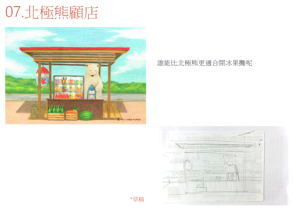 這次線上展的畫作,有些印製成明信片,有興趣的朋友可以在年年Nien Huang 的 Pinkoi 賣場購買,想看更多插畫歡迎加入Facebook或Instagram。