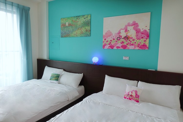 我們與台東民宿 「賞星月沐」的主題房合作案,以本身民宿現有的良善硬體設施,加上此次專案的新商品 無痕輕版畫、造型抱枕、馬克杯、陶瓷杯墊、珪藻土皂墊、寶石水晶皂…等,設計成充滿可愛童趣、療癒旅人心情的主題房。房間的月亮燈,多種色調變換,可隨著喜好調整,充滿幸福的氛圍。