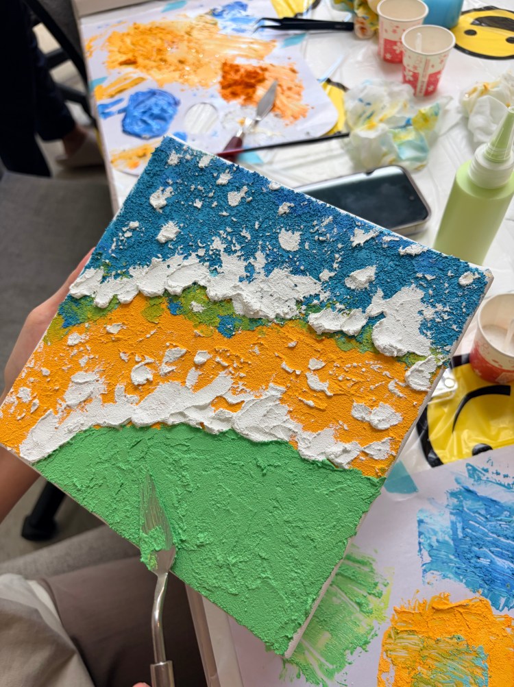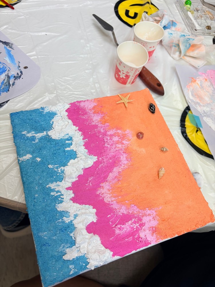 今年很榮幸接獲 天主教福利會 的邀請,應台北市社會局辦理「114年提升安置兒童及少年照顧服務品質 提升工作人員專業知能方案」,透過夢想製造所舉辦此次肌理畫活動- 《聽海》。